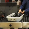 July 9, 2025An air traveler puts his shoes in a bin before passing through a Transportation Security Administration...